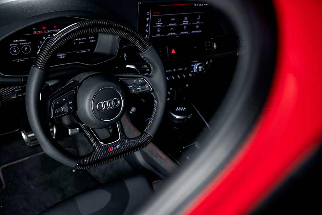 Далее тюнинг ABT для Audi RS4 Avant делает более особенным интерьер. Основные моменты включают логотипы RS4-S на спинках сидений, дверных порогах и ковриках, плюс значок на приборной панели. За отдельную плату ABT добавляет углеродные кожуха сидений, каркасов сидений и кожухов приборной панели, плюс карбоновые и кожаные вставки в отделке рулевого колеса.