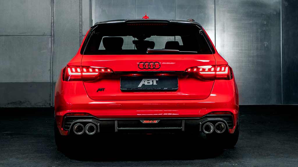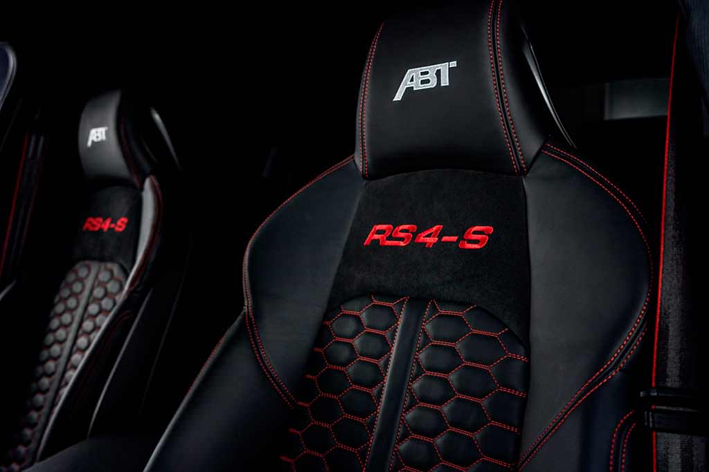 Усовершенствованная Audi RS4 Avant от ABT оснащена выхлопной системой из нержавеющей стали с четырьмя круглыми наконечниками из углеродного волокна, каждый из которых имеет диаметр 102 мм. Завершает внешний вид комплект 21-дюймовых легкосплавных дисков ABT Sport GR с глянцевой чёрной отделкой. Ещё ABT RS4-S включает модернизацию шасси, регулируемые по высоте пружины подвески и стабилизаторы поперечной устойчивости на передней и задней осях. Кроме того, за дополнительную плату доступно обновление подвески с помощью койловеров.