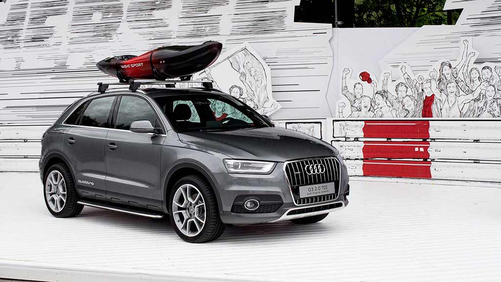 Впрочем, называть концептом данную модификацию Q3 не совсем правильно, ведь вся её концептуальность сводится лишь к установке на серийную базу Q3 дополнительных вкусностей из пакета Audi Original Accessories. Набор состоит из симпатичных легкосплавных колёсных дисков и практичных рейлингов на крыше. Готовность полноприводного путешественника Audi к приключениям подтверждается каяком и рядом других интересных аксессуаров.