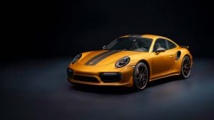 Компания Porsche рассекретила новый 911 Turbo S Exclusive Series – самый мощный, быстрый и уникальный 911 Turbo S из когда-либо созданных. Спортивный автомобиль ограниченного тиража окрашен в золотисто-желтый цвет с полосками из углеродного волокна на крыше и капоте. Дизайнеры также установили на автомобиль боковые юбки из углеродного волокна и подобрали уникальные 20-дюймовые колеса с акцентами в цвет кузова Golden Yellow.