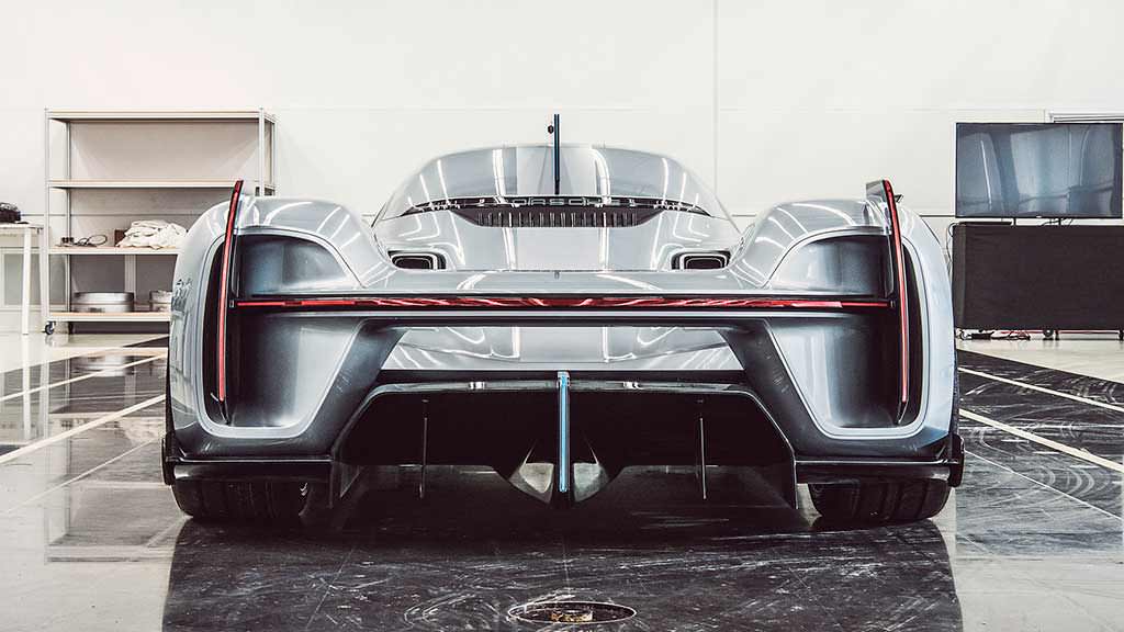 Сходство Porsche 919 Street с 919 Hybrid продолжается в форме линии крыши и в большом акульем плавнике. Однако в то время, как у гоночного болида используется массивное заднее крыло, у 919 Street вместо него установлено узкое крыло со светодиодной полосой на всю ширину, соединяющее две задних колёсных арки. От этого крыла по бокам исходят два вертикальных аэродинамических крыла со светодиодными полосами. Дополняют сложный аэродинамический рисунок кормы большой диффузор и две выхлопные трубы, выходящие прямо из крышки моторного отсека.