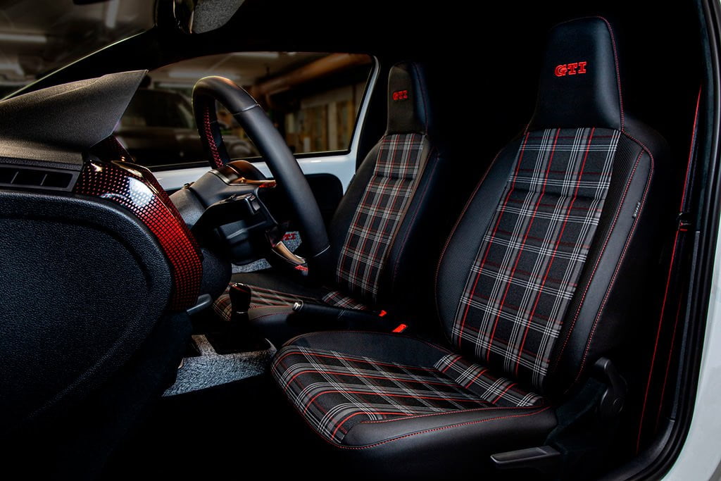 Клетчатые сиденья в салоне Volkswagen Up! GTI