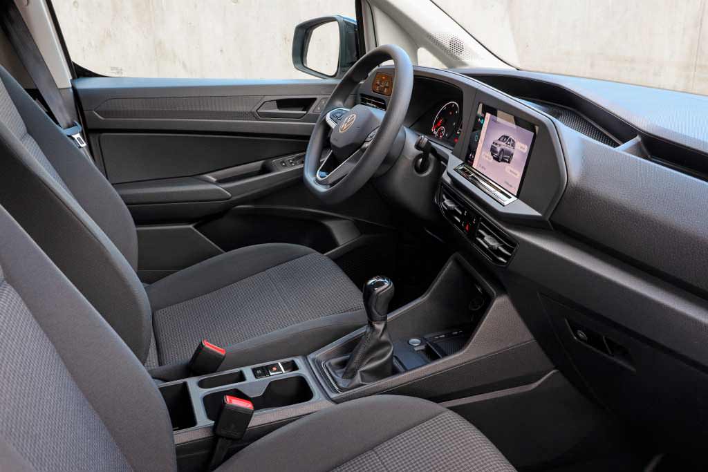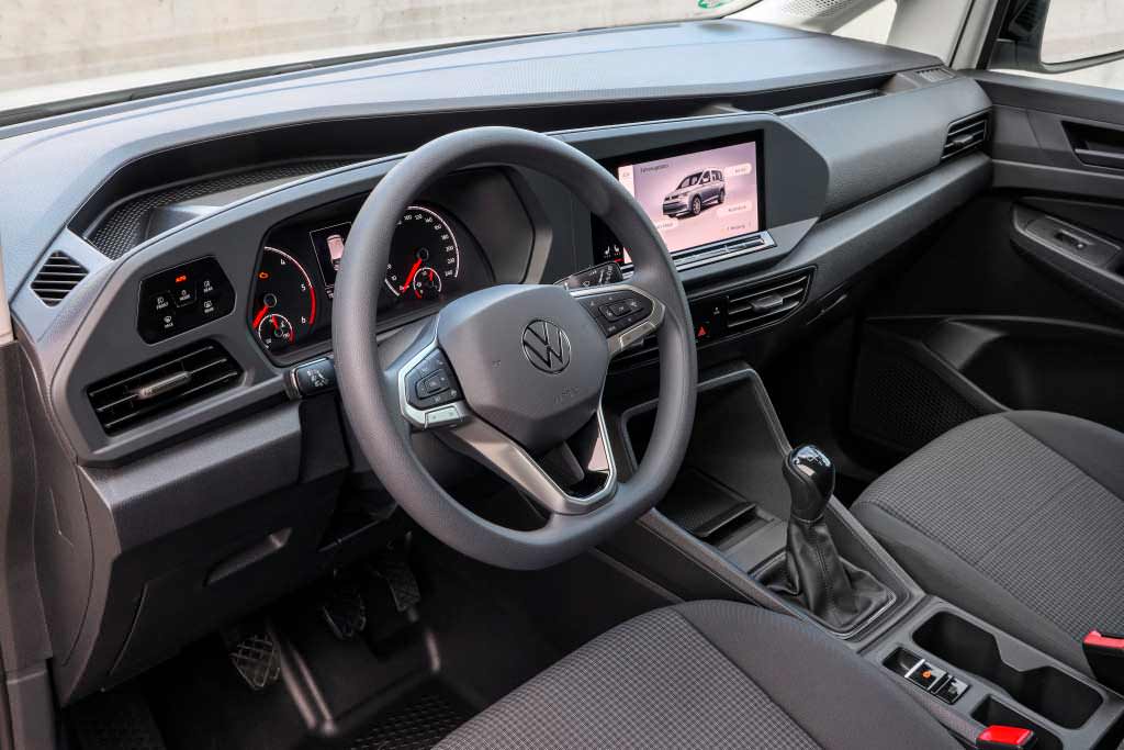 Новый Volkswagen Caddy в базовой версии оснащается аналоговой приборной панелью, но опционально она может быть заменена цифровым кластером. Информационно-развлекательная система доступна с экраном на 6,0-, 8,25- и 10,0-дюймов.