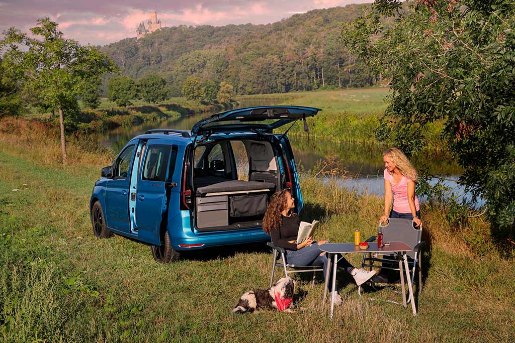 Говоря о кровати, покупатели VW Caddy California смогут спать под звёздами благодаря дополнительному панорамному люку. Также маленький фургон для кемпинга оснащен новым точечным светодиодным освещением салона с регулируемой яркостью. Кроме хорошей удобной кровати, маленький автофургон VW Caddy California можно укомплектовать опциональной мини-кухней, которая устанавливается на направляющих под кроватью и выдвигается со стороны двери багажника.