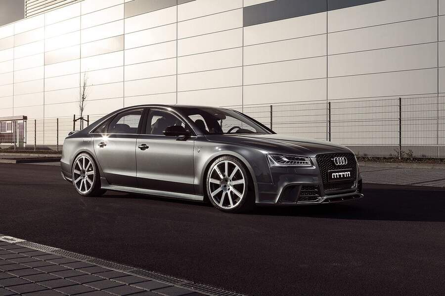 Немецкая тюнинг-мастерская MTM подготовила новый пакет послепродажной доработки для «горячего» седана Audi S8. В итоге основательной модернизации базовые 520 л.с. четырёхлитрового твин-турбо V8 выливаются в 760 л.с. и 945 Нм (в стоке этот двигатель выдаёт 650 Нм тяги). Команда MTM имела большую заинтересованность повысить выходную мощность спортивного седана до столь сумасшедшей планки: ранее другой немецкий тюнер ABT Sportsline повысил отдачу Audi S8 до 675 л.с. В доработке от MTM спортивный седан разгоняется до 100 км/ч за 3,48-секунды, тогда как у обычного S8 на это уходит 4,1-секунды, а в тюнинге от ABT Sportsline — 3,6-секунды.