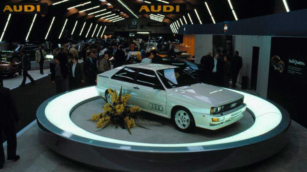 Audi назвала свою революционную систему полного привода Quattro, что в переводе с итальянского означает «четыре» и решила вывести её на рынок в составе своей новой высокопроизводительной модели — Audi Quattro. Автомобиль с 200-сильным пятицилиндровым двигателем впервые представили публике на Женевском автосалоне 1980 года. Это спортивное купе уже в сезоне 1981 года начало участвовать в гонках ралли WRC. В 1982 и 1984 годах Audi выиграла Международный чемпионат по ралли для производителей, а в сезоне 1985 года гонщики Мишель Мутон, Ханну Миккола, Стиг Бломквист и Вальтер Рёрль выиграли 23 гонки. Триумфальные выступления в гонках группы B натолкнули Audi на мысль, что дополнительное сцепление на скользких поверхностях высоко оценят и обычные автомобилисты, поэтому она постепенно начала интегрировать полный привод Quattro в свои другие модели. Например, так появилась полноприводная Audi 80, от которой берёт свое начало и современная Audi A4.