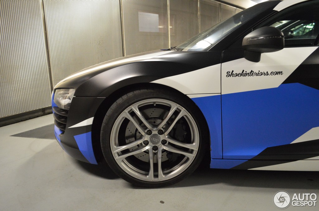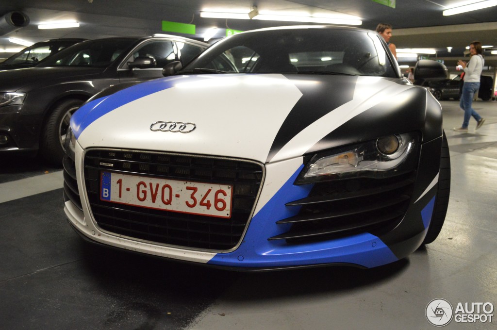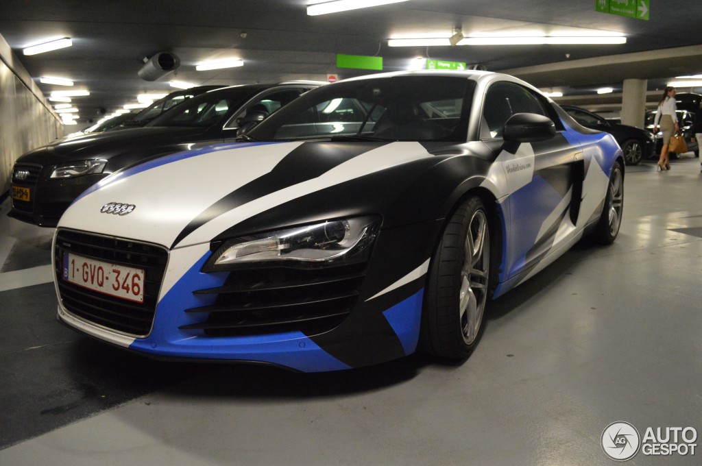 Audi R8 в арктическом виниле замечена на паркинге в Нидерландах. Это довольно символический стайлинг, ведь если в мире и существуют суперкары, адаптированные для езды по снегу и льду, то это точно полноприводный Audi R8. На фото запечатлен суперкар в версии V8 с 4,2-литровым TFSI мощностью 420 л.с., способный делать спринт с 0 до 100 км/ч за 4,5 секунды.