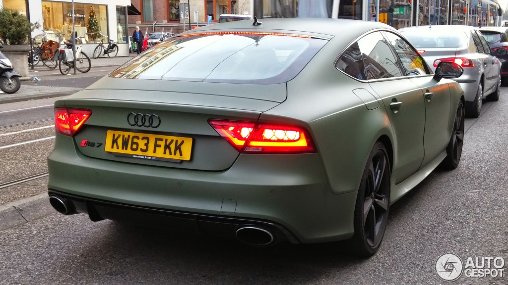 Как правило, обычные проекты оклейки автомобилей винилом мы не рассматриваем. Это тюнинг для совсем ленивых! В то же время, мы не имеем права обделять вниманием винилы, преображающие автомобили в совершенно экзотические экземпляры, например, как этот Audi RS7 в Амстердаме, примеривший зеленый матовый милитари винил.