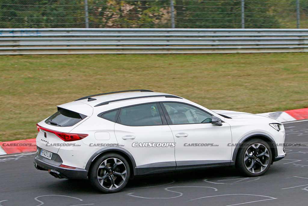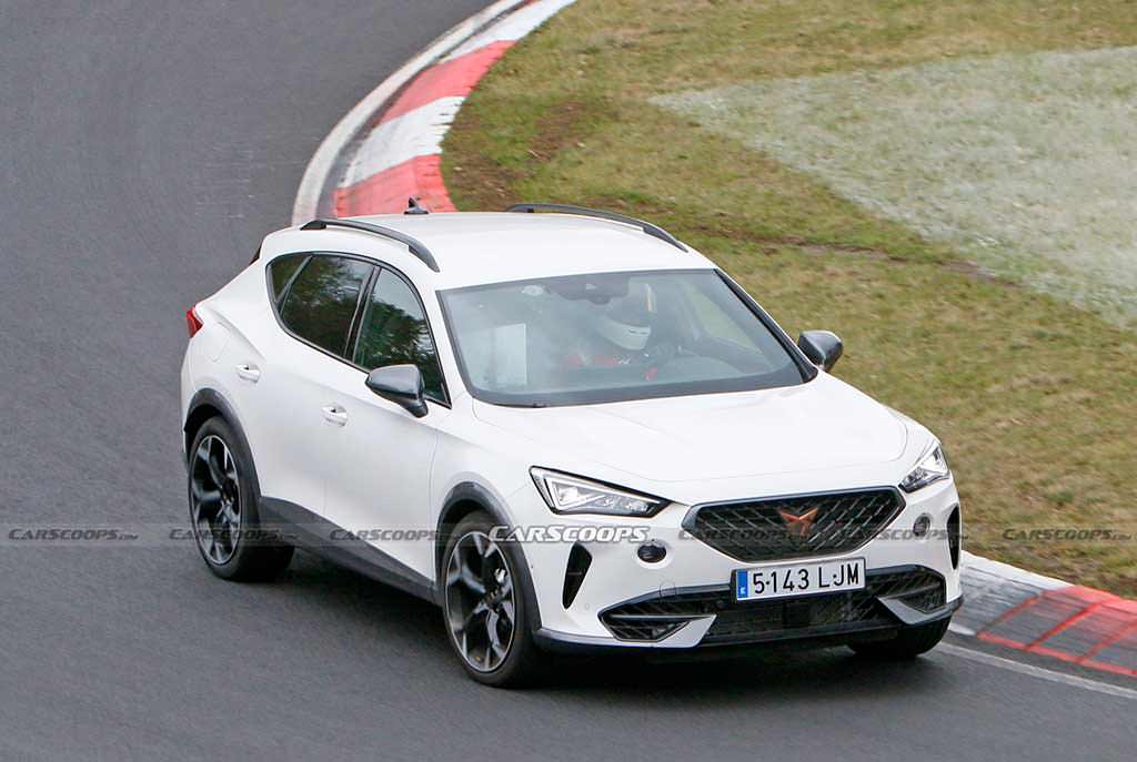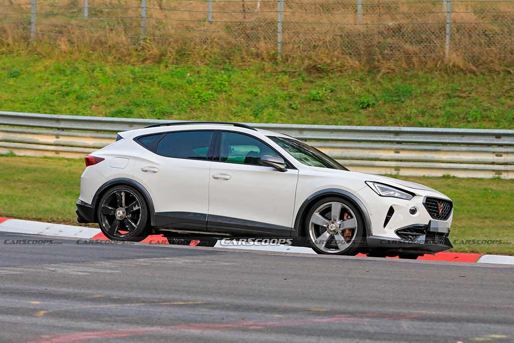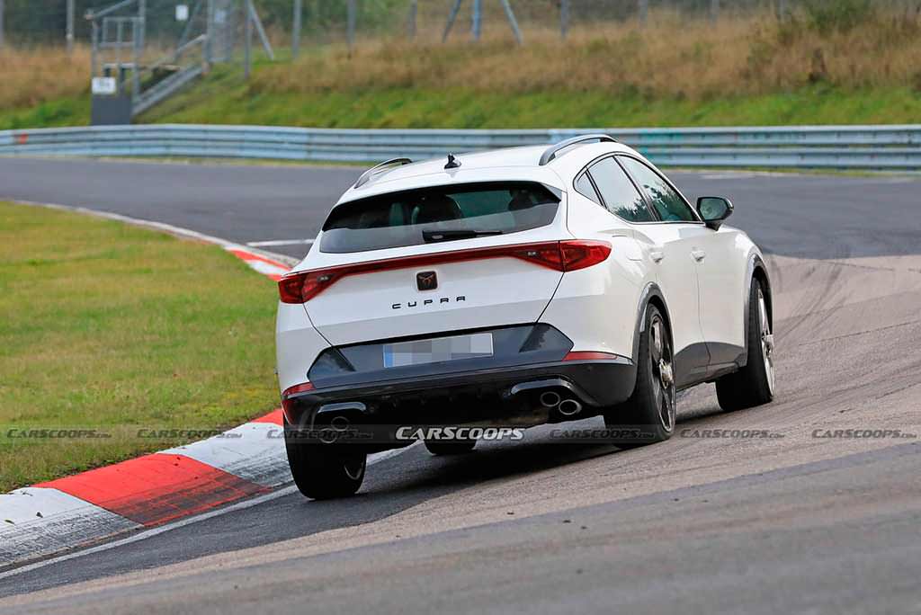 Фотошпионы Carscoops сделали серию снимков, как тестовый Cupra Formentor VZ с диагонально расположенными выхлопными трубами рассекал по легендарной трассе и звучал так, будто он упакован силовым агрегатом от RS3 / RS Q3. Похоже, Cupra уже несколько месяцев испытывает турбо-пятёрку Audi, поскольку похожий рёв из-под капотов тестовых Cupra Formentor фотошпионы на страже Нюрбургринга слышали ещё прошлой зимой.