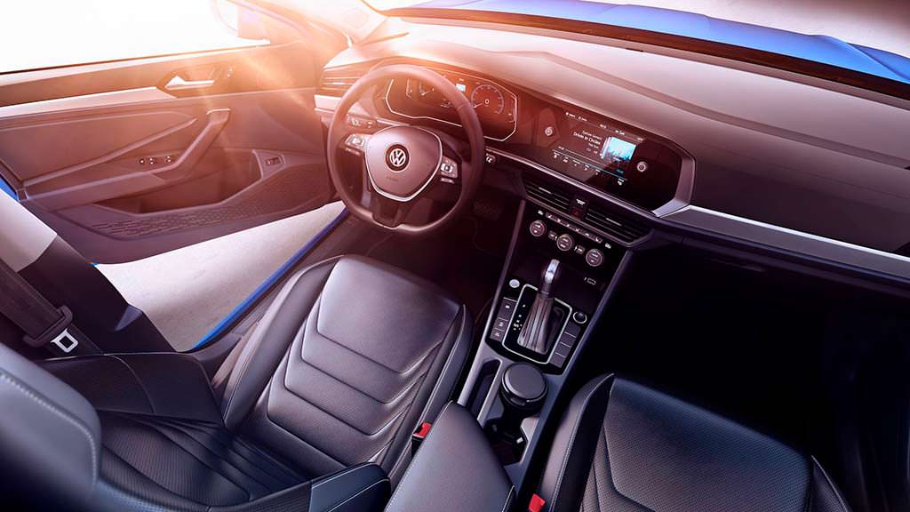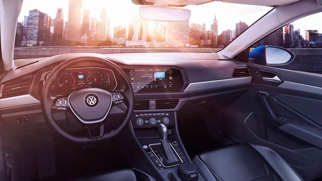 Высококлассный интерьер VW Jetta 2019 усеян множеством технологий. В США на выбор предложат комплектациях S, SE, SEL и SEL Premium. В двух последних случаях седан поставляется с цифровым кокпитом вместо аналоговых колодцев приборной панели со старта. Новый интерфейс приборной панели можно настроить под свои предпочтения: навигация, скорость, технические показатели или настройки автомобиля.