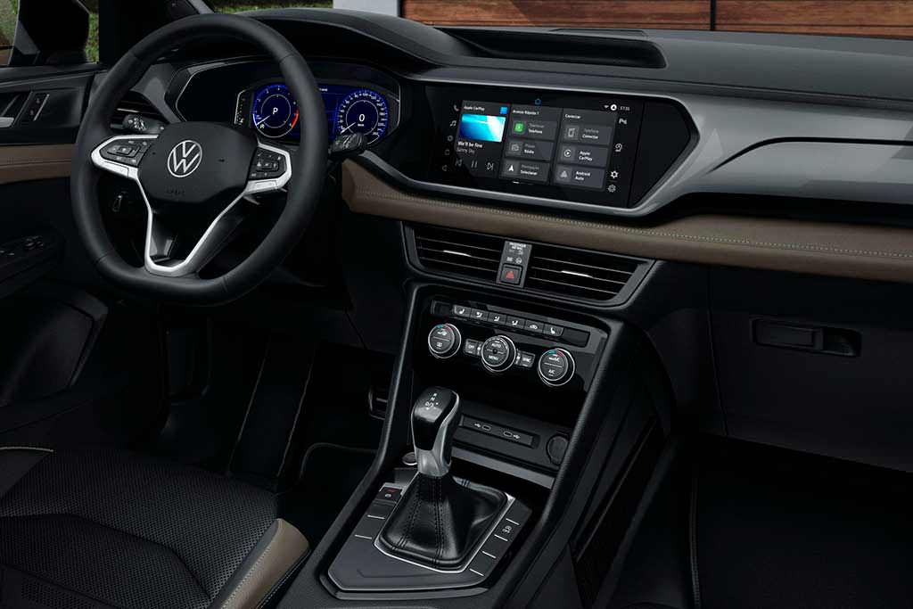 Интерфейс, разработанный VW Brazil, оснащён 10,1-дюймовым сенсорным экраном и предлагает, помимо прочего, возможность загружать приложения, подключать телефон через Wireless App Connect и планировать обслуживание автомобиля. Информационно-развлекательную систему VW Play также можно комбинировать с 10,25-дюймовой цифровой приборной панелью Active Info Display. Ещё в салоне латиноамериканского маленького кроссовера предусмотрена индукционная беспроводная зарядка для смартфонов и 10-цветная система окружающего освещения.