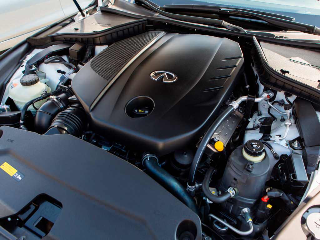 Мощность новой бензиновой «турбочетвёрки» составляет 211 л.с. при крутящем моменте 320 Нм, доступных с 1 250 об/мин. Аналогичным двигателем немецкая компания Mercedes-Benz оснащает новое поколение своего хэтчбека A-Classe, а также четырёхдверное купе CLA. Несмотря на породистые корни, немецкий двигатель в Infiniti всё же модифицировали. Какие именно детали изменились в моторе для Q50 в компании не уточнили.
