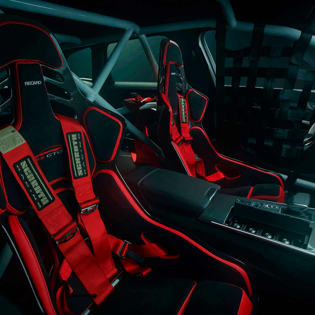 Индивидуальные штрихи продолжаются и в салоне, где окончательная связь с обычным RS6 разорвана набором гоночных сидений из углеродного волокна, каркасом безопасности вместо заднего дивана и несколькими кнопками в области центральной консоли, где обычно находятся подстаканники.