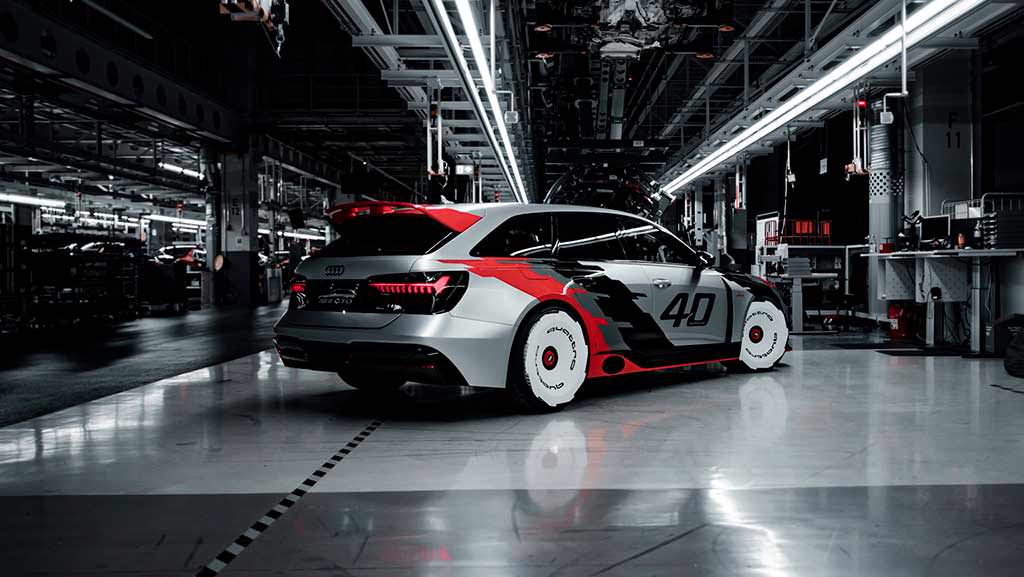 Вдохновлённые гоночным автомобилем Audi Quattro IMSA GTO, стажёры завода Audi в Неккарзульме сначала создали индивидуальную ливрею для RS6 с такой же комбинацией белого, серебристого, серого, чёрного и красного цвета. Этот экстремальный семейный универсал также оснащён очень похожими колёсами, турбированным двигателем и боковым патрубком выхлопа.