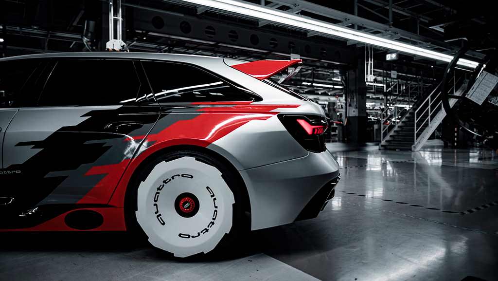 Кроме того, дизайнеры переделали заднюю часть кузова Audi RS6 Avant, установив массивное красное крыло, тонированные задние фонари, нестандартный диффузор и центральный стоп-сигнал в стиле F1.