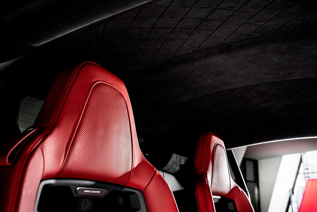 Чёрный потолок из алькантары в салоне Audi R8 Panther Edition