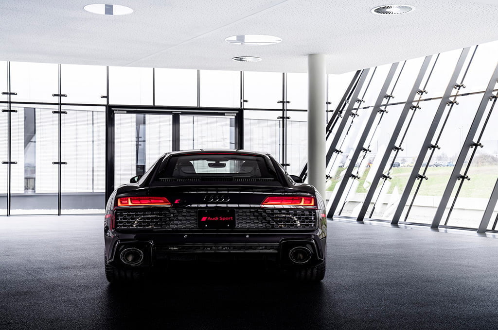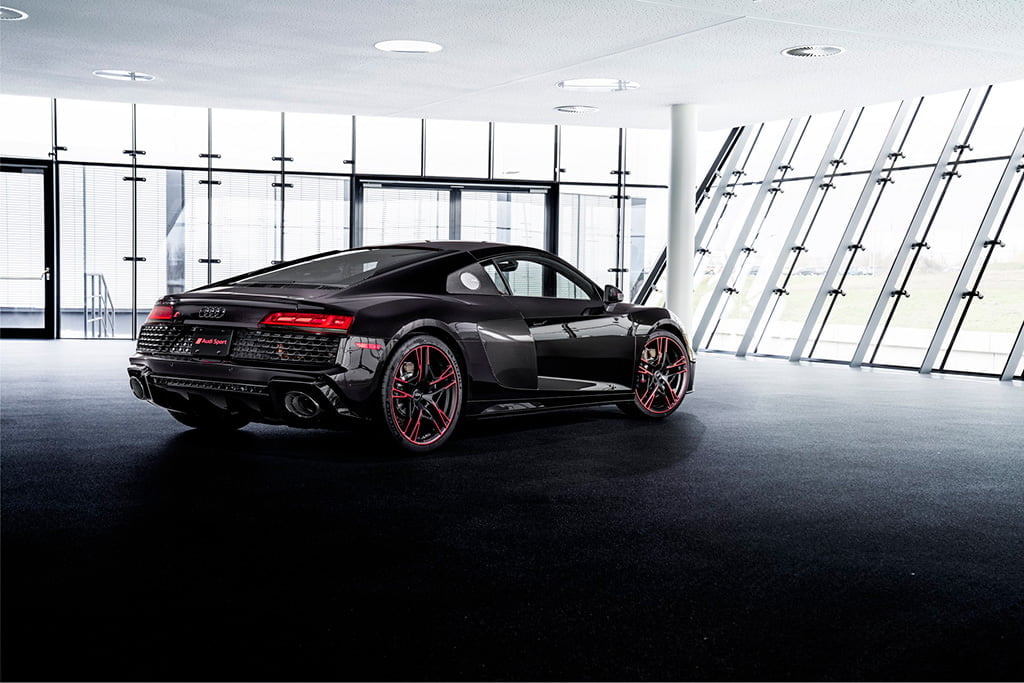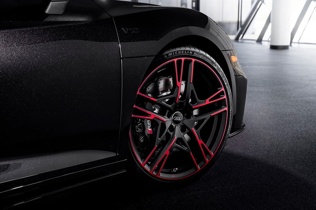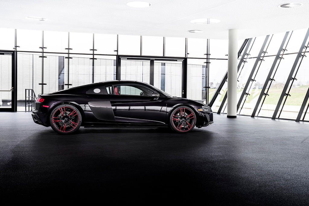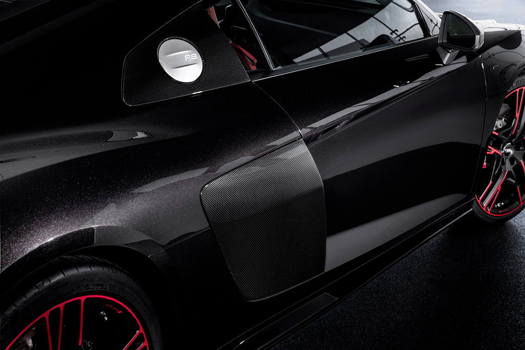 Модель под названием Audi R8 Panther Edition 2021 года отличается затемнёнными значками и окрасом кузова с эффектом кристаллов Panther Black, которая переливается тёмно-фиолетовым оттенком при ближнем рассмотрении. Лимитированный суперкар также оснащён корпусами зеркал из углеродного волокна и 20-дюймовыми колёсами в матовой чёрной окраске и красными акцентами.