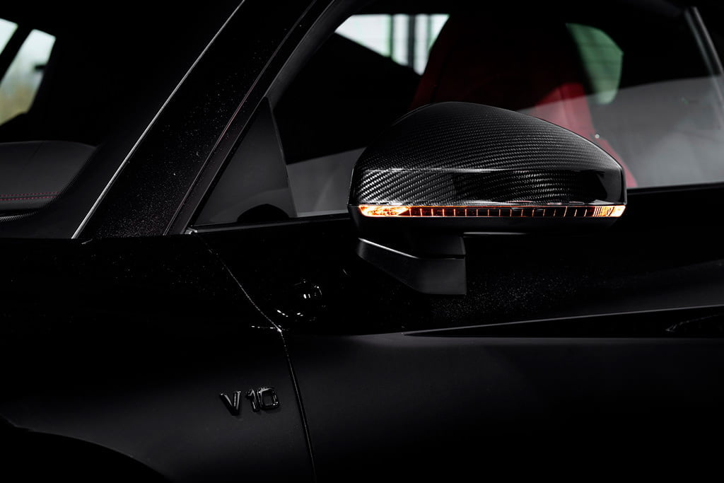 Среди других особенностей — светодиодные фары по кругу, спортивная выхлопная система и карбоновый пакет экстерьера. Последний добавляет карбоновых накладок и отделку углеродным волокном в моторном отсеке.