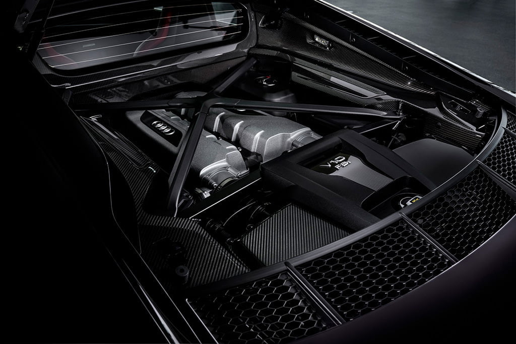 Карбон в отделке моторного отсека Audi R8 Panther Edition